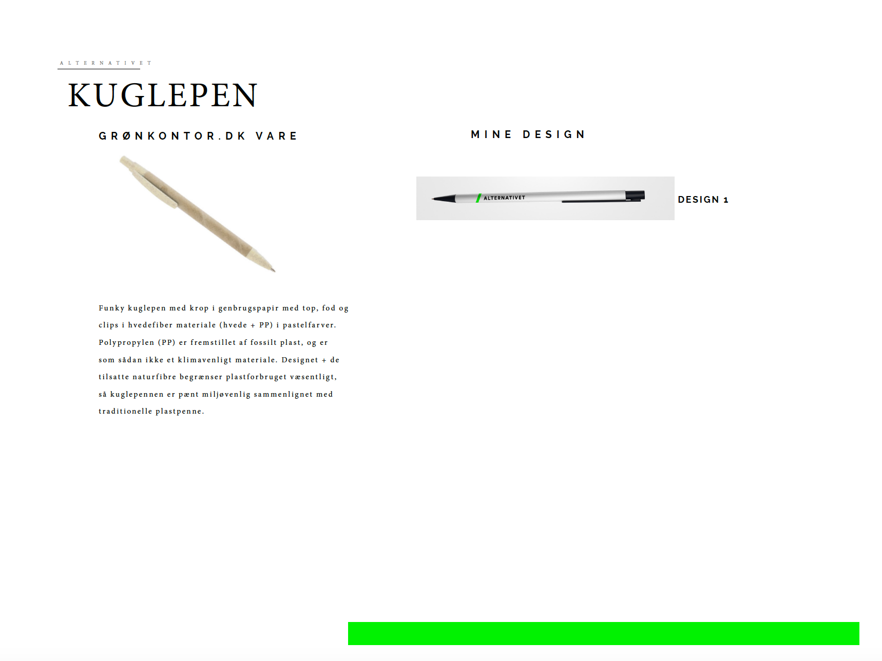 Out of the other two parties (Alternativet and Socialistisk Folkeparti), I decided that designing a new collection for Alternativet would be the easiest for me, regarding my background, as I could hone in on my experience in the sustainability sector and create products that are both visually appealing and sustainable.